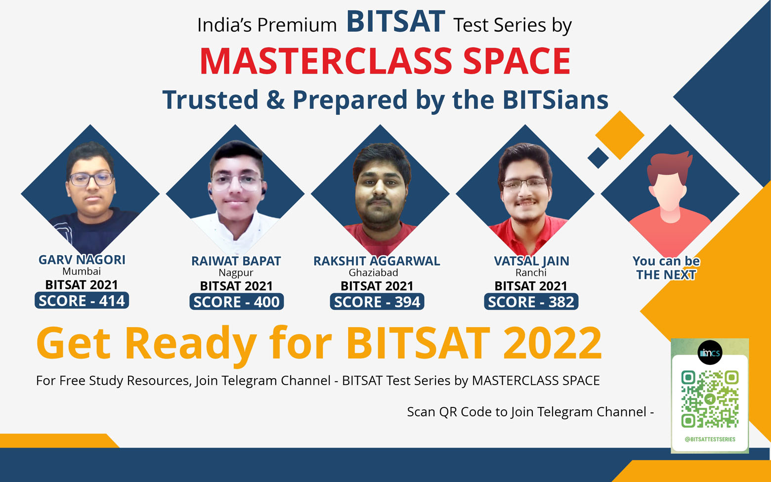Masterclass Space brings you BITSAT Test Series in latest pattern (having 130 questions instead of 150) prepared by a team of alumni from BITS Pilani itself.